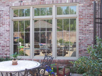 French doors with storm clamps installed. |
