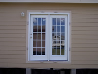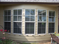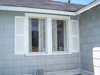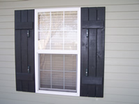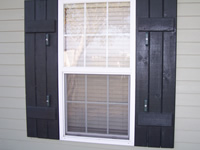 Hardee plank siding with decorative wood shutters. |