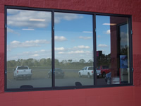 Commercial store front (aluminum framed) / triple window / Storm Clamps installed.
