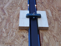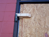 (aluminum framed) / plywood installed / close up of side of Storm Clamp in use.