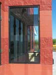 Commercial store front (aluminum framed) / double doors / top window with Storm Clamps installed.