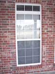 Brick frame window with Storm Clamps installed. |